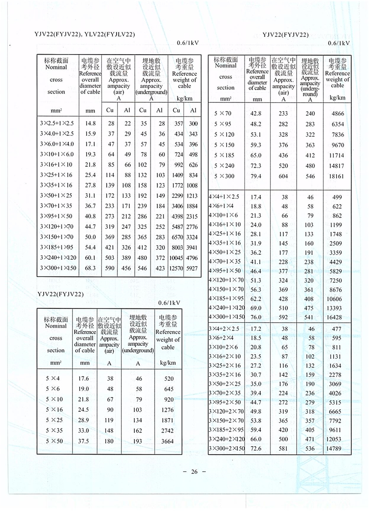 詳細(xì)介紹:YJV22敷設(shè)在地下,能承受機(jī)械外力作用,但不能承受烯絕緣鋼帶鎧裝聚氯乙烯護(hù)套電力電纜 較大拉力。